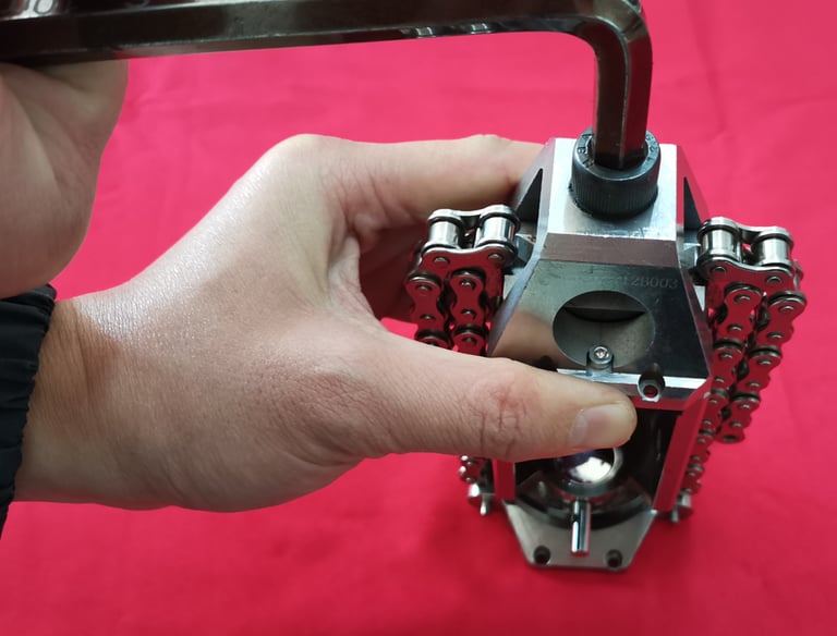 A thoughtfully designed chain applicator is suitable for use in confined spaces where access to the sample object is restricted.